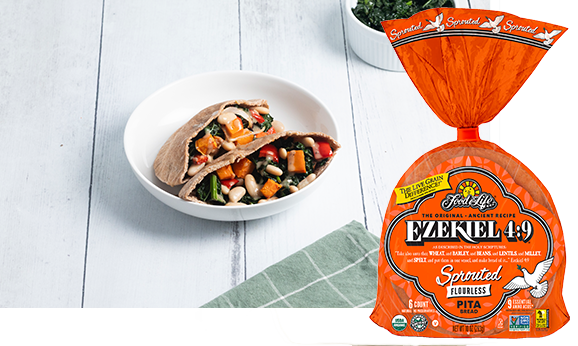 Warm Roasted Veggies & White Bean Stuffed Ezekiel 4:9 Organic Sprouted Flourless Pitas