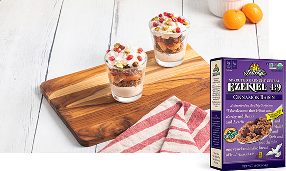 Wintery Ezekiel 4:9 Sprouted Whole Grain Cereal “Gingerbread” Yogurt Parfait (Vegan)